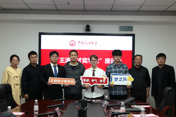 为弘扬王涛老部长“争雄、争气、争光”的“三争”精神,强化“王涛英才奖学金”的育人平台功能,聚力培养拔尖创新人才,全面提升“梦之队”的学生凝聚力,11月7日,学校合作发展处、教育发展基金会组织召开2025年“王涛英才奖学金”座谈会,邀请2025年获得学校推荐的学生、往届获奖代表参加座谈,合作发展处处长、服务山东办公室主任、教育发展基金会秘书长胡义贵出席活动。合作发展处副处长马梦华主持座谈会。