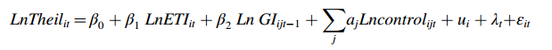 本文采用Theil指数作为因变量,关键自变量是ETI,控制变量包括人均GDP(PDGP)、城市化水平(Urban)、政府干预(GI)、贸易开放度(Trade)、失业率(Unemp)和产业结构(IS)。
