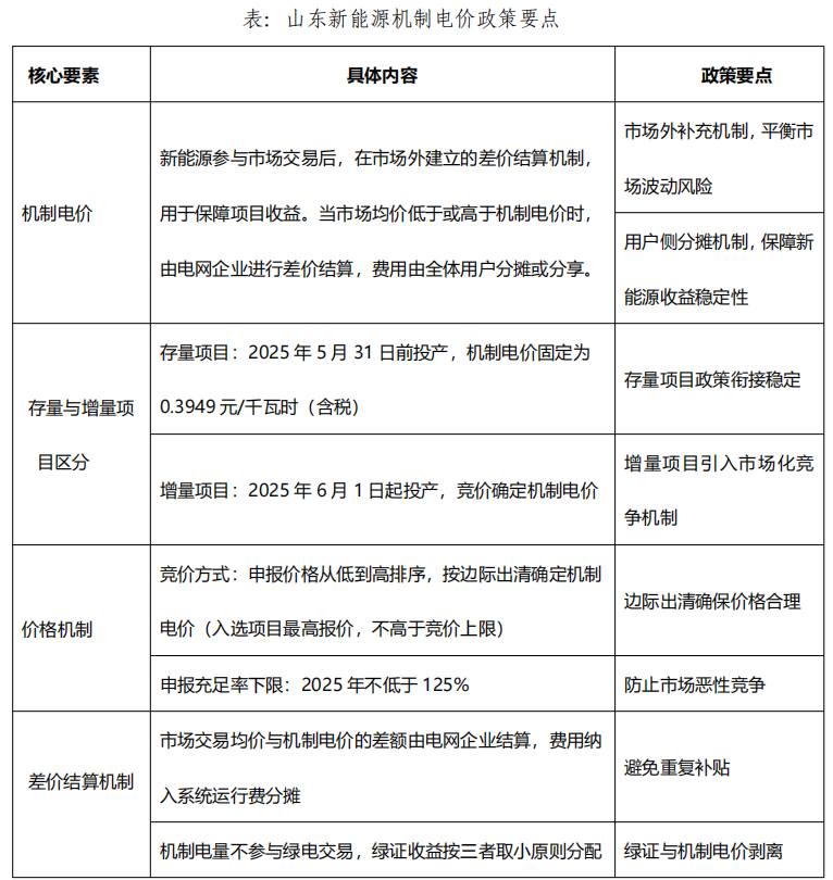 2025 年 5 月 7 日,山东省发改委出台《山东省新能源上网电价市场化改革实施方案(征求意见稿)》下称《意见》、《山东省新能源机制电价竞价实施细则(征求意见稿)》,成为全国首个落实国家 136 号文的省级政策文件。