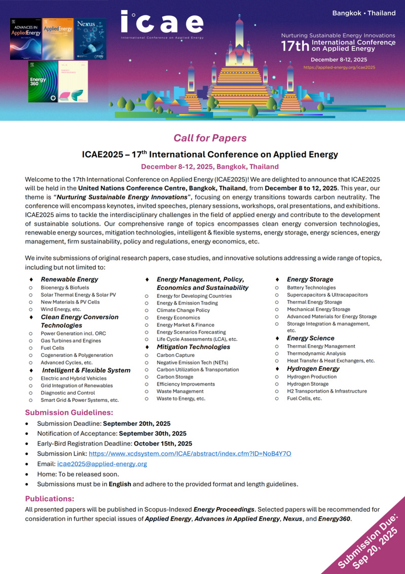 · 邮箱: icae2025@applied-energy.org