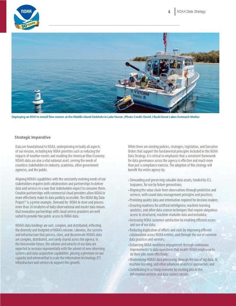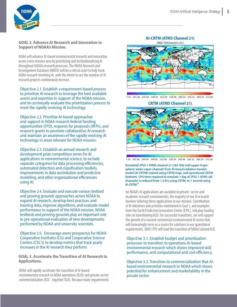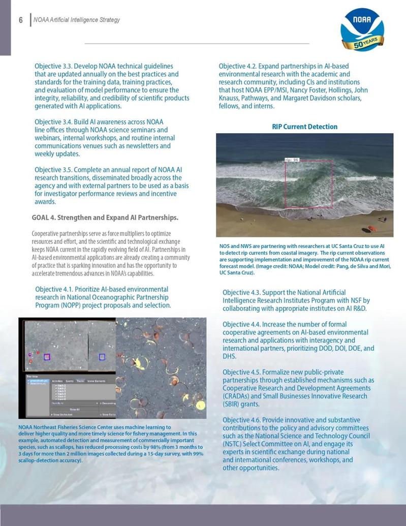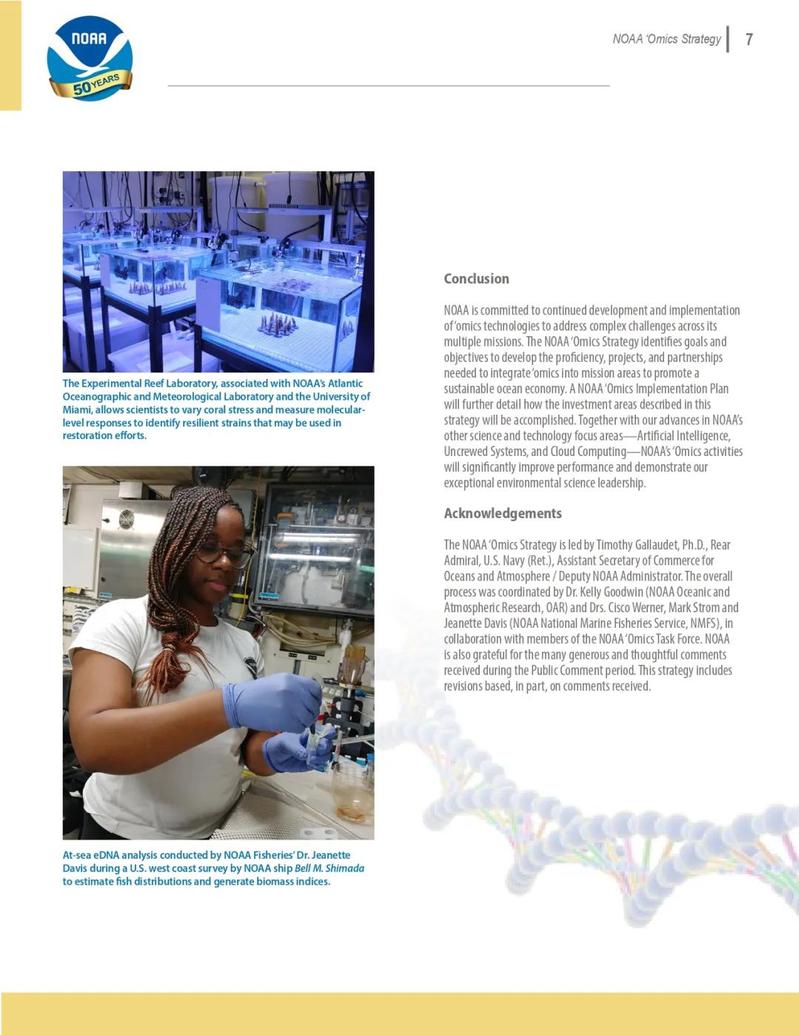 The use of these tools is not new to NOAA. In fact we have robust experience and demonstrated leadership with applications across a variety of mission areas and are already delivering successful operational systems that are beginning to pay dividends. To illustrate, UxS is already helping us map and explore more of America’s oceans, coasts, and Great Lakes; AI is analyzing satellite data for severe weather and wildfire detection; Cloud computing partnerships with commercial cloud service providers allow NOAA to make more of its valuable data publicly accessible; NOAA already manages (or has extensive experience managing) environmental data that form the basis of NOAA's scientific products and services; and, ‘omics is already informing fisheries management decisions. Implementing our strategies more fully will accelerate these advances and serve as force multipliers to solve tough problems and set the course to strengthen our environmental S&T leadership for the coming decades.