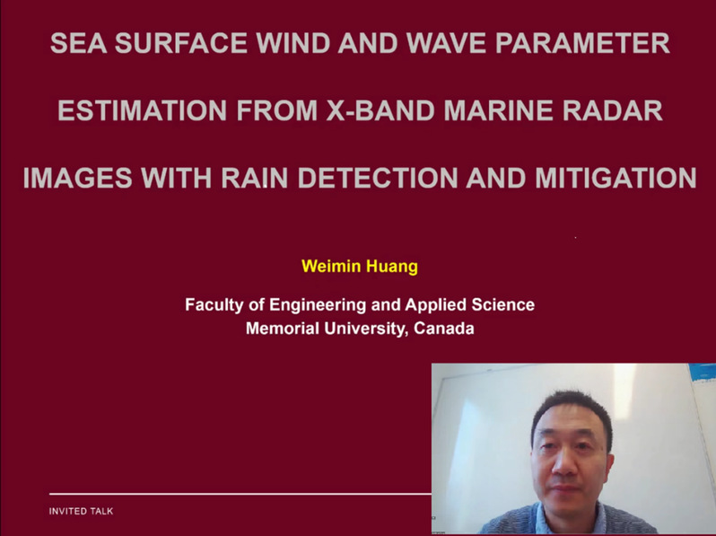 12月22日,依托科技部高端外国专家项目“海洋空间信息智能处理理论与方法国际合作研究”,加拿大纽芬兰纪念大学工程与应用科学学院黄为民教授做客“海空论坛”,做题为“Sea Surface Wind and Wave Parameter Estimation From X-Band Marine Radar Images with Rain Detection and Mitigation”的学术报告,并与参会专家和学生进行线上学术交流。本次学术报告吸引了雷达领域专家学者、研究生近百人线上参会交流,报告会由任鹏教授主持。