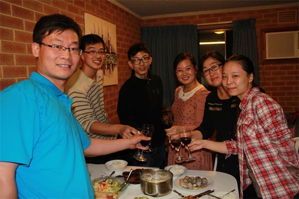 课后的购物、买菜、做饭、聚餐都是非常快乐的时光,我们越来越了解彼此,越来越像兄弟姐妹,像一个大家庭。澳洲的红酒和牛羊肉物美价廉,丰富的生活离不开它们,在熟悉宿舍彼此后,我们开始了联谊,不同的宿舍相互联谊,聚餐、聊所得、谈理想,增进更多的了解,这是一种非常美好和健康的生活。