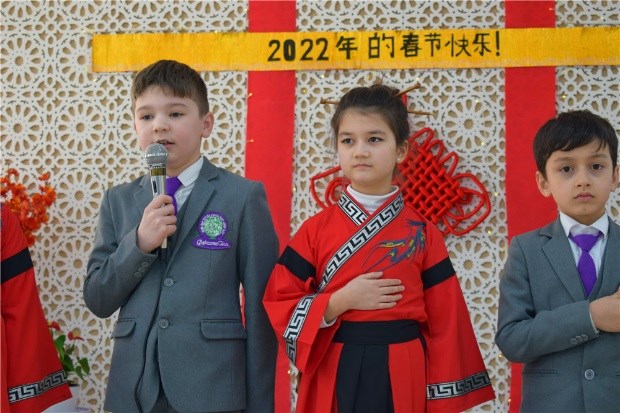 2022年2月18日,塔吉克斯坦冶金学院孔子学院下设教学点布斯通市沃利索尼伊姆中学举办“庆新春 唱未来”主题活动。孔子学院中方院长任耕田、教学副院长马驰、中学校长阿卜杜哈利科夫娜·莎 姆斯雅,该校教职工、中小学生以及学生家长等共计 70 余人参加活动。