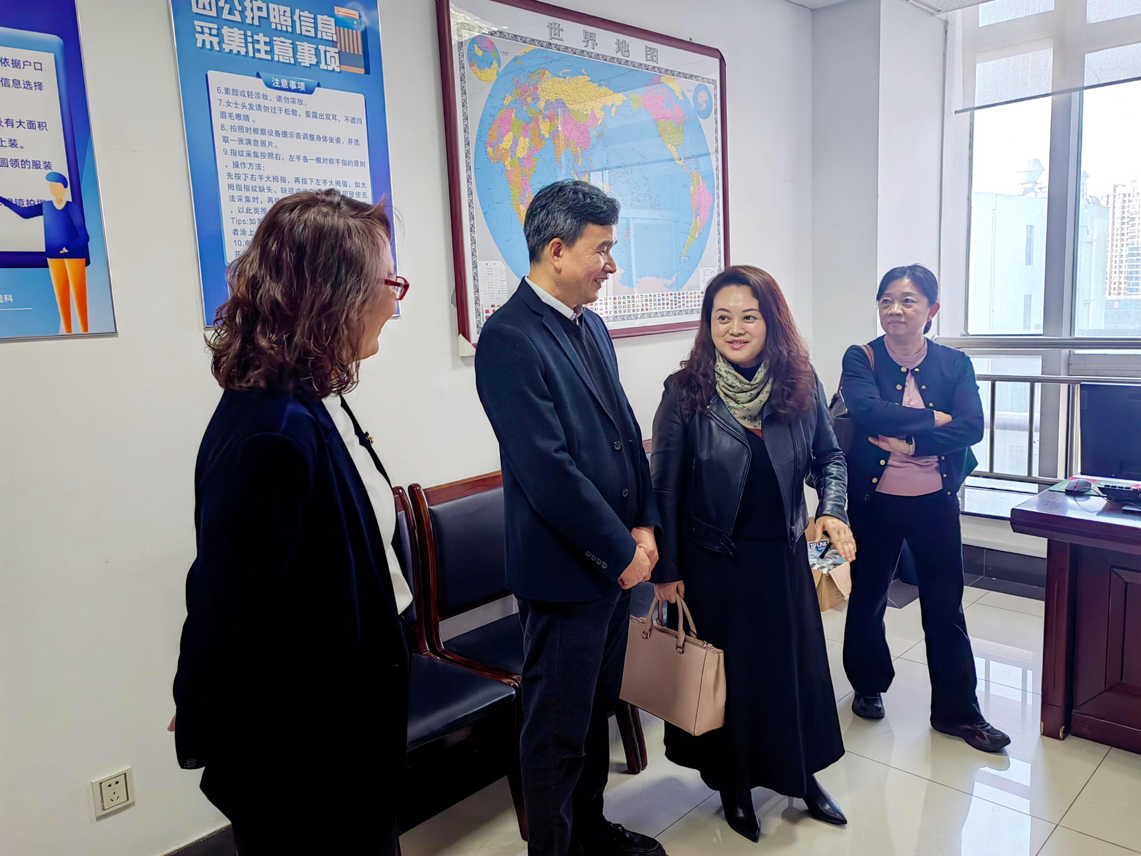 11月7日,山东省委外办制证中心主任刘燕及相关业务负责人一行来校调研学校因公出国与护照管理工作。参加调研会议的有国际合作与交流处处长黄方、副处长王娟等。