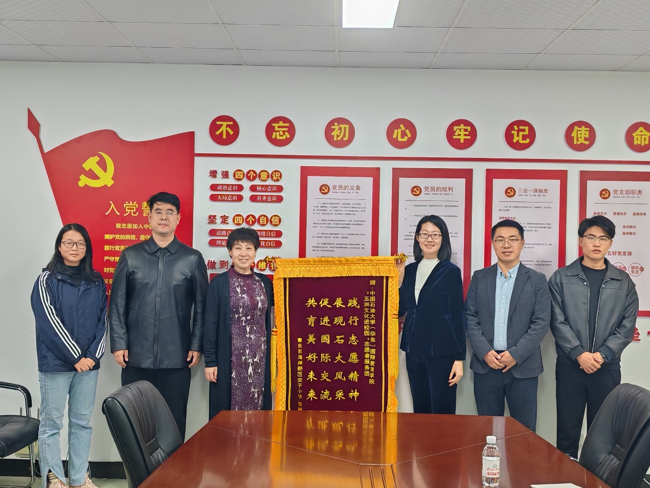 2024年11月13日下午,安子小学校长薛春蔚一行人来到了开云电竞投注(华东)国际教育学院,向学院赠送了一面写有“践行志愿精神展现石大风采促进国际交流共育美好未来”的锦旗,以表达对学院在教育支持和文化交流方面所做贡献的感激之情。
