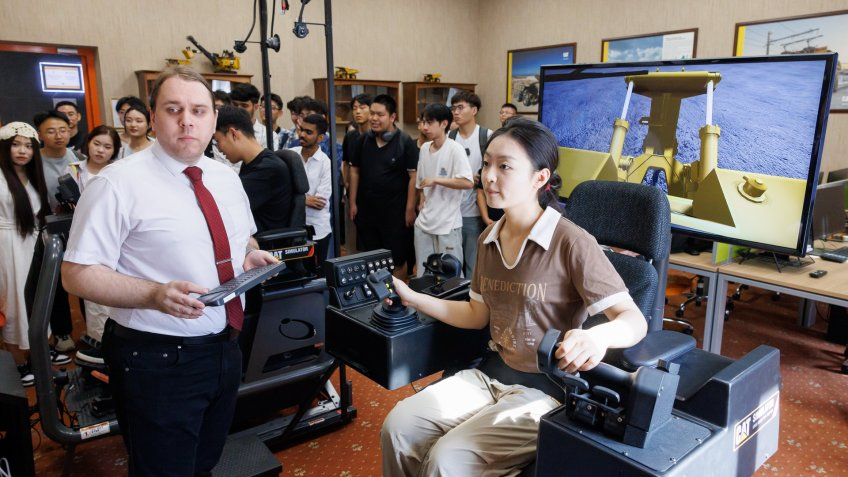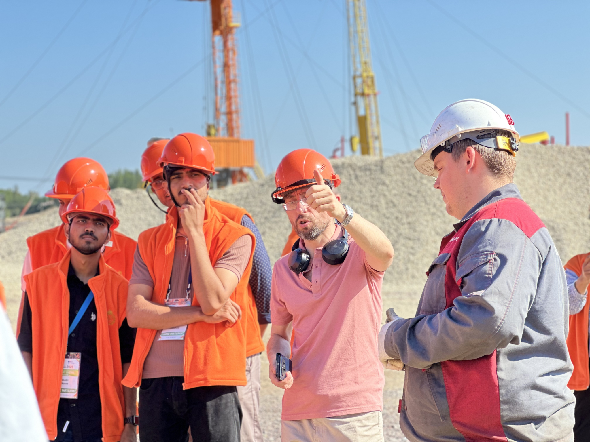 走出校园,同学们前往加夫里洛夫斯科耶采石场、智能工作训练场等多个生产现场,通过“理论-仿真-实操”的模式进行沉浸式实地研学,有效实现夯实理论学习与提升专业技能的双提升。同学们纷纷表示,在采石场实地观摩露天采矿流程与长臂煤矿开发技术令人印象深刻,通过交互式模拟器体验工业安全操作规范,真正体会到欧洲安全理念中防护措施与生产流程深度融合的实践智慧。