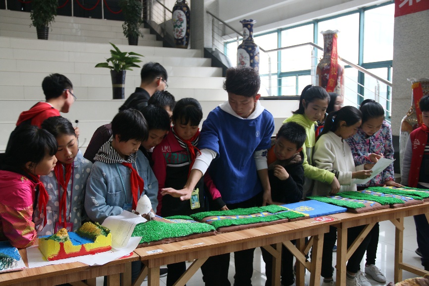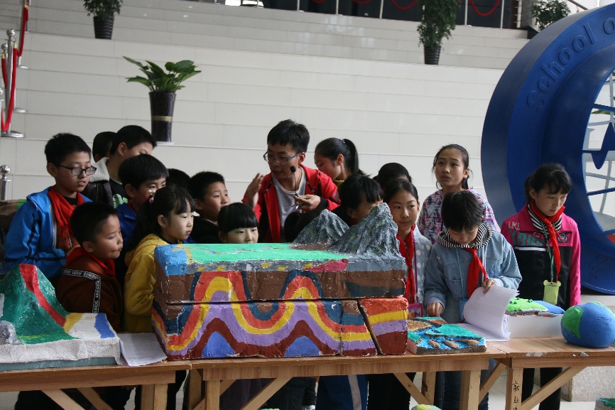 大学生志愿者为灵山卫街道儿童讲解地质知识