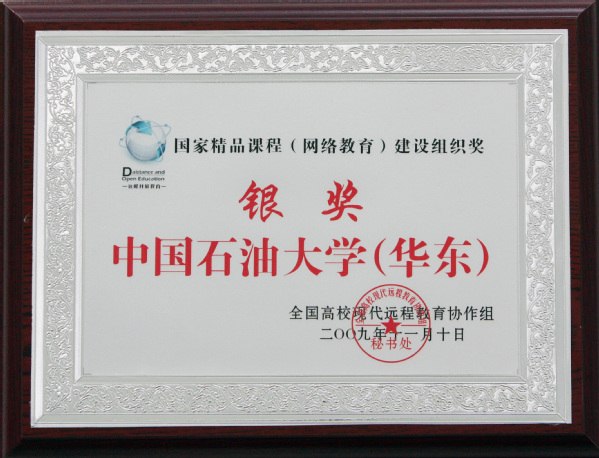 14.2009年11月国家精品课程(网络教育)建设组织奖银奖(全国高校现代远程教育协作组
