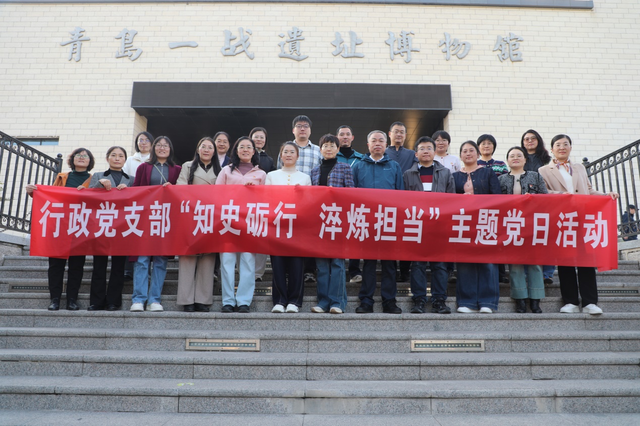 为纪念中国人民抗日战争暨世界反法西斯战争胜利80周年,推动党史学习教育走深走实,10月24日,行政党支部组织全体党员赴青岛一战遗址博物馆开展“知史砺行·淬炼担当”主题党日活动,引导党员干部从历史中汲取精神力量,砥砺初心使命,强化责任担当。