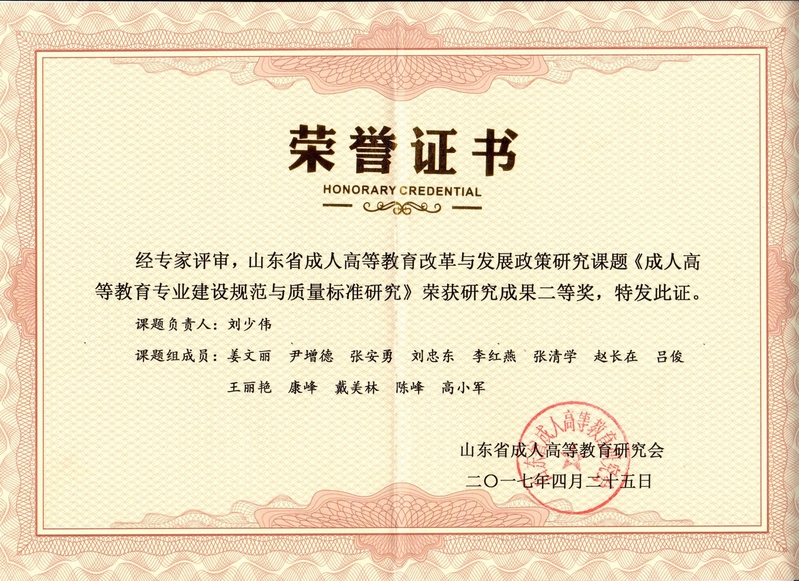 ”获山东省成人高等教育研究会二等奖
