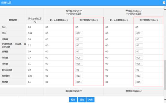 若经费涉及校内分割,应确保相关人员已经列入到该项目的“合同成员”中。