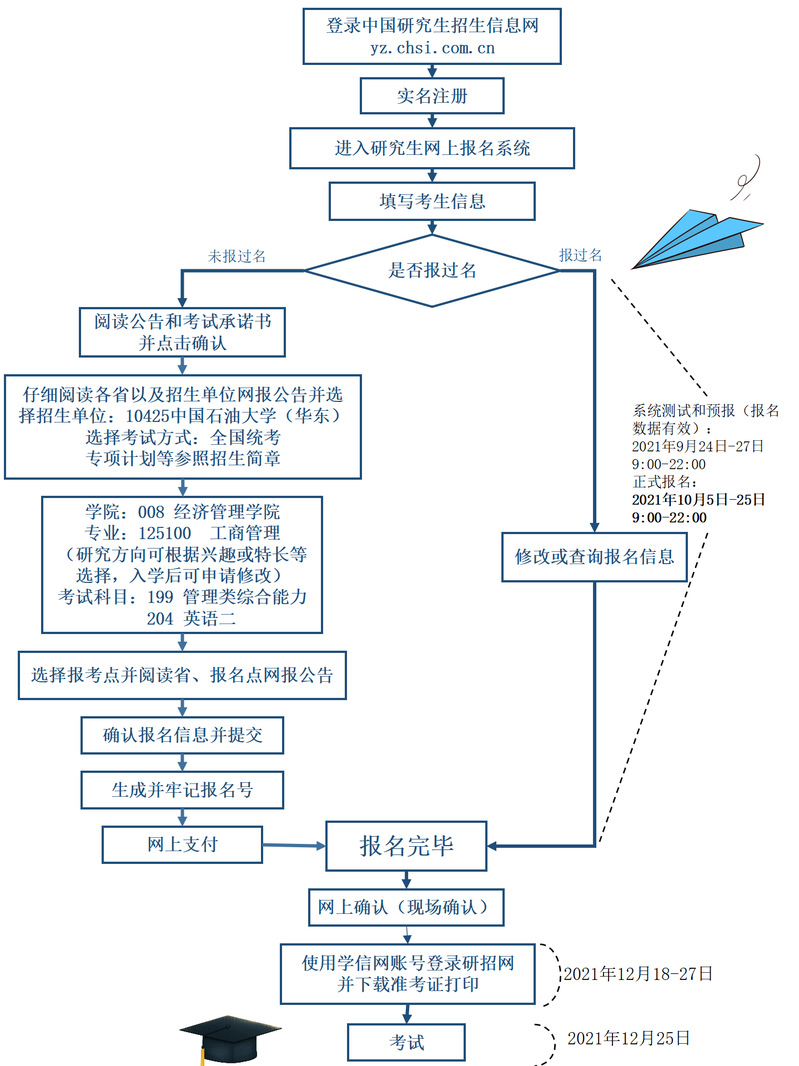 网上报名时间为 2021 年 10 月 5 日至 10 月 25 日,每天 9:00—22:00。网上预报名时间为 2021 年 9 月 24 日至 9 月 27 日,每天 9:00—22:00。