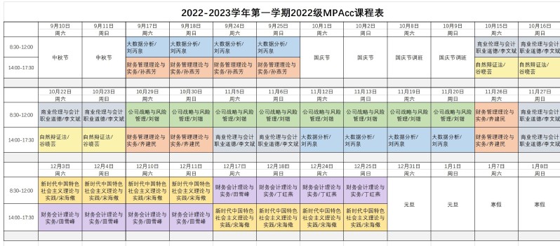 2022-2023学年第一学期非全日制MPAcc课程表