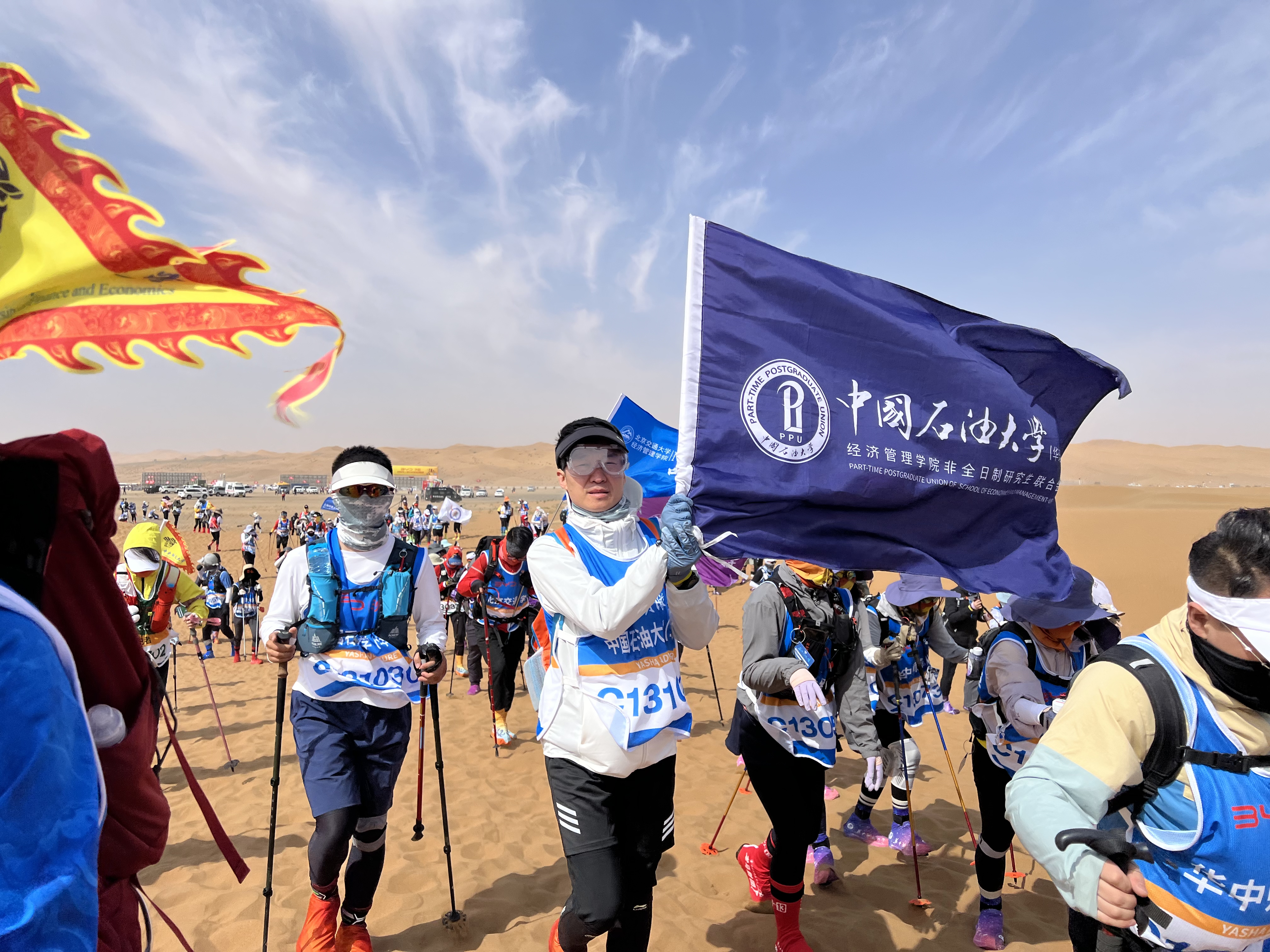 5月2日-4日,我校经济管理学院MBA学子在非全日制研究生联合会活动部部长成禹的带领下踏上了赴阿拉善· 腾格里沙漠的征程,参加了一场挑战极限、磨砺意志的体育盛宴—第十三届亚太地区商学院沙漠挑战赛(简称“沙13”)。这场为期三天的赛事,汇聚了来自115所商学院的4067名MBA、EMBA、MEM菁英。由成禹、卜路遥、刘鸿运组成的石大MBA战队作为参赛队之一,他们与亚太地区的商学院菁英同场竞技,凭借着坚定不移的毅力和卓越的团队协作能力,成功征服了这场充满挑战的沙漠赛事。