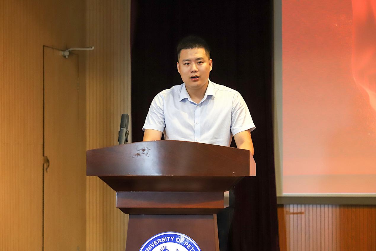 “四年前的金秋季节,我和大家一样,怀揣着虔诚与梦想,踏入石大的校门。也正是那时,让我与石大精神产生了连接与共鸣。”校友代表、山东法恩泰科技工程有限公司总经理刘善成在讲话中深情地回忆了自己在母校求学经历的点滴,感恩学校和学院给予的培养和关怀。他勉励新生保持空杯心态、积极参加实践活动、怀揣梦想勇毅前行。