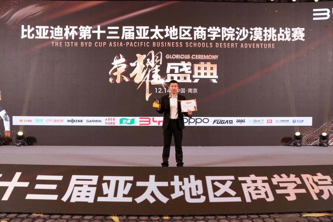2024年12月14日,第十三届亚太地区商学院沙漠挑战赛颁奖典礼在六朝古都南京举行,2022级MBA成禹赴南京参加颁奖活动,代表我院领取了沙赛魅力院校奖、沙赛同心奖,队长成禹获得了商学院意见领袖奖。