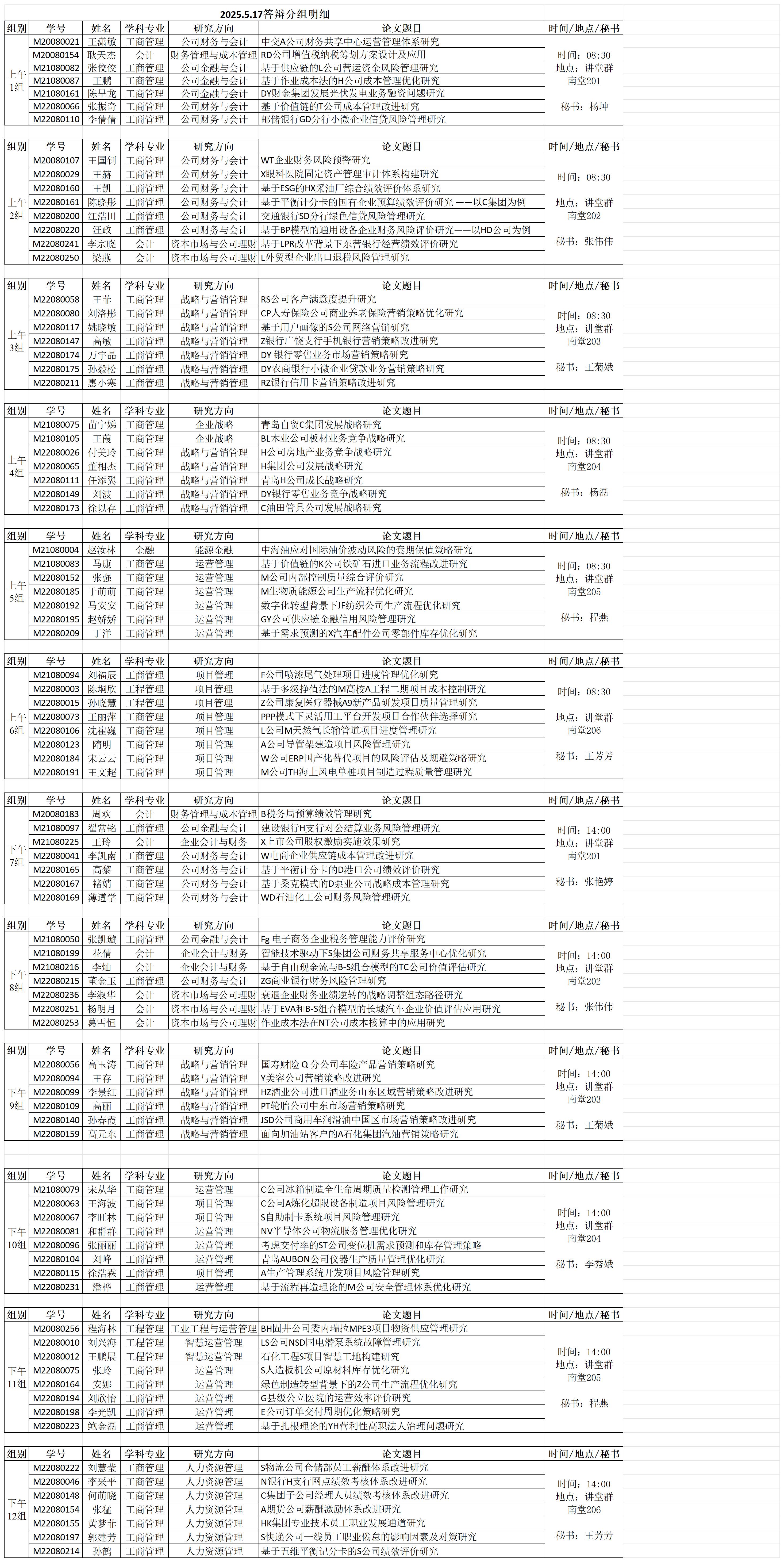 根据研究生院相关规定,2025年夏季批次经济管理学院MBA、MEM、MPAcc、MF专业硕士答辩具体安排如下: