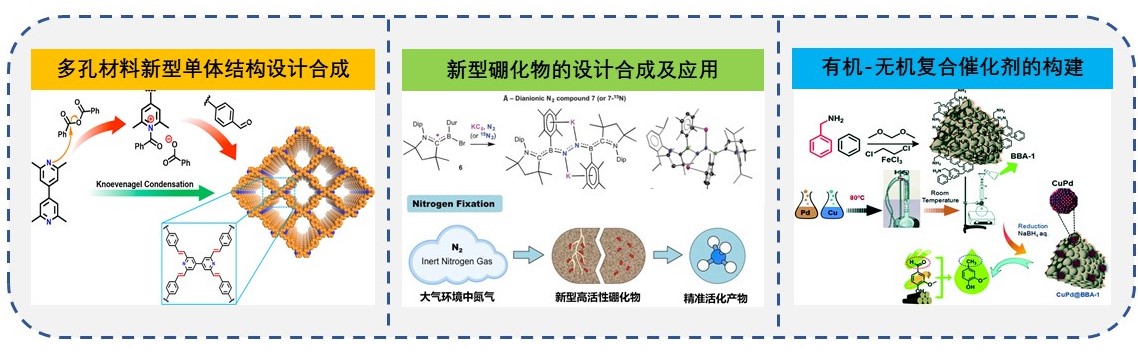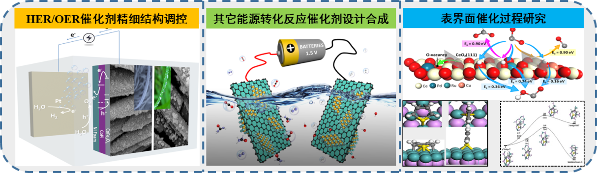 从高效非贵金属催化剂设计合成出发,围绕催化剂活性中心的氧化还原状态、表界面结构、相互作用等精细结构调控,开发多种能源催化剂用于电水制氢/制氧、还原CO2制多碳烯/烷烃、柴/汽油加氢脱硫等;采用分子模拟方法,研究催化剂表界面催化反应过程,明确活性位点催化行为本质,为高效催化剂设计开发提供理论指导。 (3)新型功能有机小分子合成及应用研究: