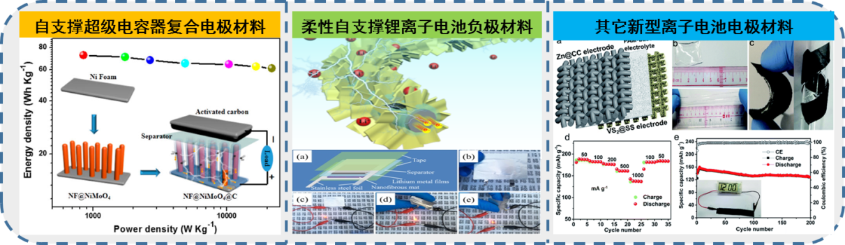 采用DFT、GCMC和MD方法结合的多尺度模拟技术,研究深层/致密/页岩中油气赋存、驱替、运移等现象,采用气驱、水驱、聚合物驱等多种手段提高油气采收率,随后探究地质结构中CO2的滞留、溶解以及矿化埋存现象,同时对CO2驱油与地质埋存中气窜及防窜控制关键问题进行研究。明确工程问题中的基础科学原理,探究油气开发的微观作用机制,实现微观-介观-宏观的跨量级的连贯研究。 (5)柔性自支撑储能电极的开发及应用基础研究: