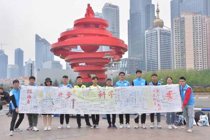时值五四运动100周年,为继承和发扬五四精神,5月5日,由材料学院探路者实践中心承办的“五月的风”系列活动在五四广场举行。探路者志愿服务与社会实践中心全体成员参加。