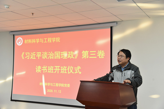 材料学院《习近平谈治国理政》第三卷读书班将在2020年11月至2021年12月期间,采取个人学习与集中学习相结合,学习研讨和红色教育相结合的形式开展活动。旨在深入推进学习贯彻习近平新时代中国特色社会主义思想向纵深发展,学懂弄通做实《习近平谈治国理政》第三卷内容,同时结合贯彻落实习近平总书记关于党史、新中国史、改革开放史、社会主义发展史的学习活动、《习近平总书记教育重要论述讲义》等,进一步提高我院广大师生及党员干部党性修养和理论水平,坚定理想信念,传承红色基因,激发爱国力行,做到真正用党的创新理论来武装头脑、指导实践、推动工作。