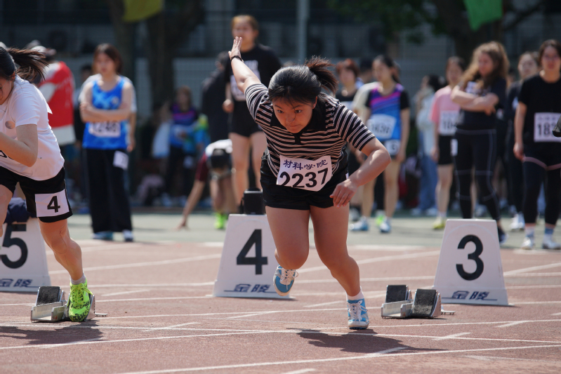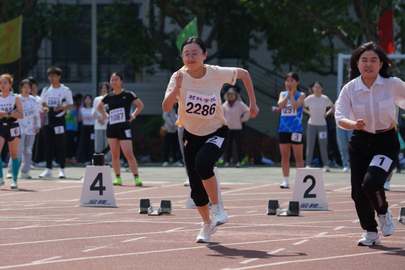 运动场上,学院师生发扬不畏艰难、勇往直前的精神,充分展现了学院师生风采,弘扬了学院精神,宣传了学院,赢得了全校的尊重和赞许。学生甲组(本科生)首次夺得冠军,材料健儿包揽了学生女子甲组100米、200米、400米、4*100米和4*400米冠军!学生运动员中有27人次获得比赛前三名!实现了运动会成绩的新突破!