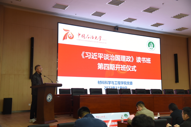 为进一步加强思想引领,巩固学习贯彻习近平新时代中国特色社会主义思想主题教育成果,坚持读原著、学原文、悟原理。11月9日下午,材料科学与工程学院《习近平谈治国理政》读书班(第四期)开班仪式在古镇口校区举行。学院党委书记门小刚、校团委书记季林海、党委组织部副部长梁秀萍、党委宣传部副部长袁永红、党委学生工作部(武装部)副部长孙鹏燕、学院专职组织员刘少伟出席开班仪式。仪式由学院党委副书记孙启龙主持。