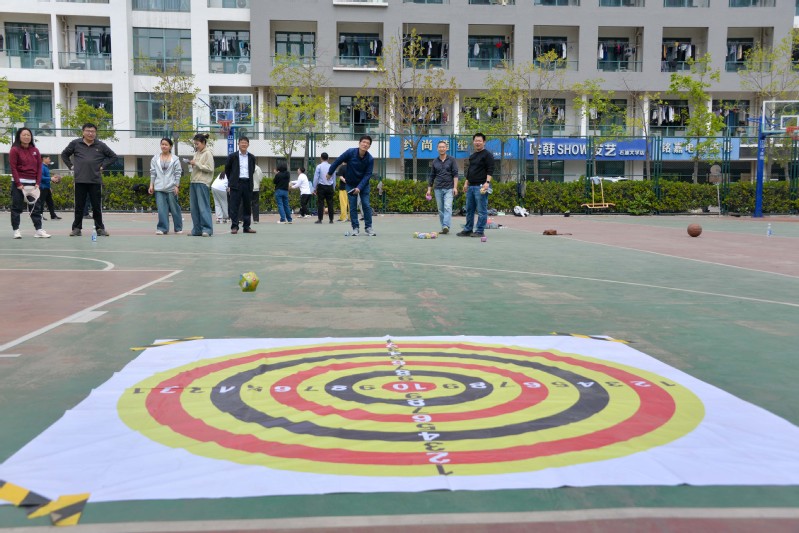 本次运动会由材料学院工会精心组织,项目设置以趣味性和团队协作主导,包括“8字跳绳”“定点投篮”“众星捧月”“十米地滚球”“沙包掷准”五项趣味比赛,学院各工会小组以团队形式参赛。赛前教职工们纷纷提前到场进行热身运动,趣味运动会在一片欢乐氛围中拉开序幕,活动开展如火如荼。在“定点投篮”项目中,老师们认真把握每一次投篮机会,屏息凝视、全力投篮,有的技术娴熟、一气呵成,有的动作稳健、连投连中,引得阵阵喝彩;“十米地滚球”和“沙包掷准”项目是对技巧性的考验,需要反复练习掌握合适的力度和精准度;“众星捧月”和“8字跳绳”项目是对团队协调性的极致考验,需要老师们齐心协力,紧密配合,通过不断磨合和默契协作找到适合自己团队的节奏,大家在这两个项目中深刻体会到了团队的力量和默契。