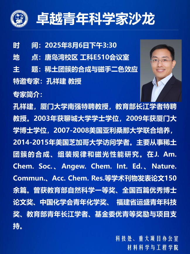 【学术报告预告】稀土团簇的合成与磁手二色效应
