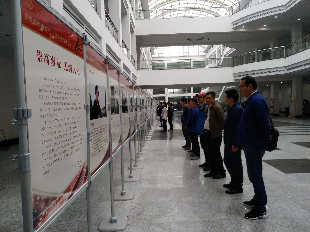 10月10日下午,装控系党支部组织党员教师参观了学校“崇高事业、无悔人生”庆祝新中国成立70周年师德风采展,本次活动是支部“奋斗的我,最美的国”宣传教育活动系列活动之一。展览在讲堂群大厅由学校工会举办,集中展示了学校2017-2018年度评选出的教师楷模先进事迹,包括10名师德标兵、10名三八红旗手和10名最美教工。党员教师们认真学习了每名教师楷模的先进事迹,展览突出体现了石大人弘扬师德、传承师风、铸造师魂、凝心聚力、建功立业的师德风范。参观结束后,党员教师们表示将以这些师德楷模为榜样,不断提高个人师德修养和教书育人水平,做学校事业发展的奋斗者和实干家,在建设高水平研究型大学新征程中建功立业。