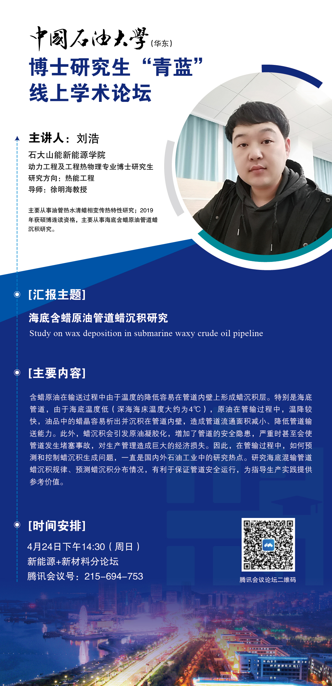 开云电竞投注博士研究生“青蓝”线上学术论坛-“材料+新能源”分论坛-刘浩