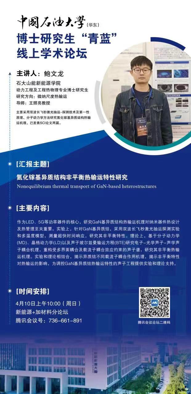 开云电竞投注博士研究生“青蓝”线上学术论坛-“新能源+新材料”分论坛-鲍文龙
