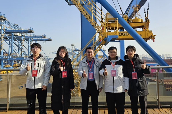 为响应科技强国战略号召,近距离感受“大国重器”的科技魅力与创新力量,11月28日,我院代表队赴山东港口青岛港全自动化码头开展研学实践活动。我院辅导员陈浩、王嘉及同行成员与码头相关负责人、技术骨干面对面交流,积极探讨科技进步为港口发展作出的巨大贡献。