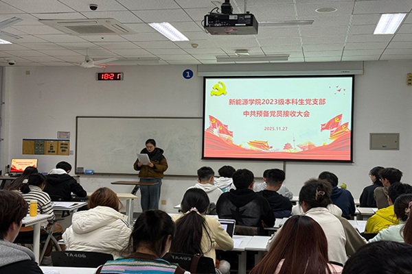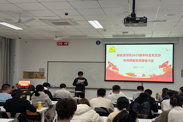 11月27日晚,新能源学院2023级本科生党支部在综合楼A409隆重召开中共预备党员接收大会。大会由党支部书记秦政主持,党支部全体党员及发展对象参会。