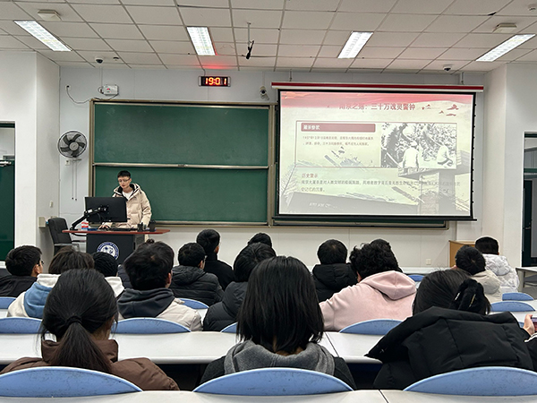 班会伊始,高金伟带领同学们回顾历史惨案,重温民族伤痛。他以时间为轴,详细讲述了1936年西安事变的背景与意义——在中日民族矛盾上升为主要矛盾的关头,张学良、杨虎城两位将军以兵谏促抗日,中共中央从民族大义出发积极调停,推动抗日民族统一战线初步形成,成为历史转折的关键;随后,他着重还原1937年12月13日南京大屠杀的惨痛史实,通过文字史料与历史照片,直观呈现日军六周内有组织屠杀、奸淫、掠夺的暴行,强调“三十万同胞惨死”这一数字背后的生命重量,让同学们深刻认识到南京大屠杀是对人类文明的极端践踏,更明白和平的脆弱与历史记忆的沉重。
