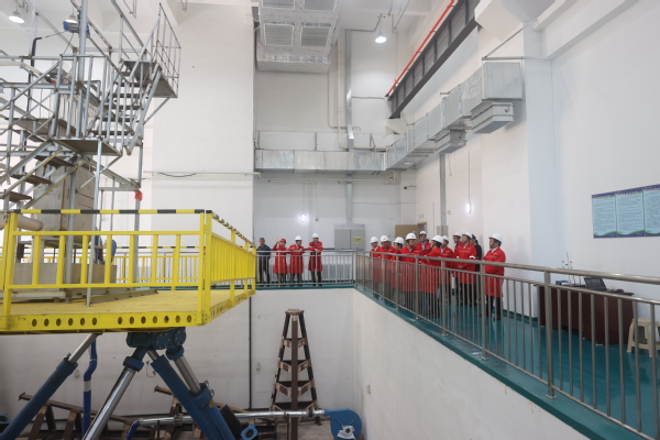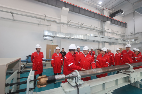 耿涛一行听取肖文生关于国家工程研究中心的工作汇报,考察多维度多谱源振动实验室、海洋石油水下装备实验室、海底钻机系统实验室,深入了解六自由度运动平台、水下生产系统水下管汇泄漏定位实验平台、水下生产系统关键动设备故障诊断实验平台、深水防喷器容错式控制系统样机、永磁直驱电动钻具、天然气水合物高效直驱采气实验系统等实验装置,了解相关科研进展和成果转化应用情况。