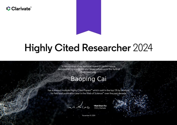 近日,2024年度全球高被引科学家榜单正式发布,遴选全球高校、研究机构和商业组织中对所在研究领域具有重大和广泛影响的顶尖科学人才。机电工程学院院长、国家工程研究中心副主任蔡宝平教授入选工程学领域全球高被引科学家榜单。