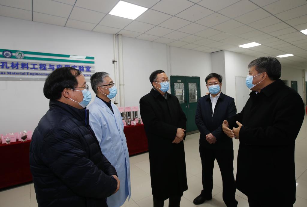 在重质油国家重点实验室,田学军一行参观考察了循环流化床中试平台、加氢精制中试装置和多孔材料工程与应用研究室,听取了实验室负责人的汇报,详细了解重质油国家重点实验室取得的主要成果、社会贡献、国际交流合作等情况。田学军仔细询问了重质油国家重点实验室与国际科研机构、高校开展合作情况,以及化学工程学院在化工、新能源、新材料领域筹备建设国际化示范学院,服务“一带一路”倡议等方面的情况,希望更加深入地开展国际交流合作,广泛吸收和利用国际优质资源,搭建创新人才培育和科技创新平台,促进开放发展。