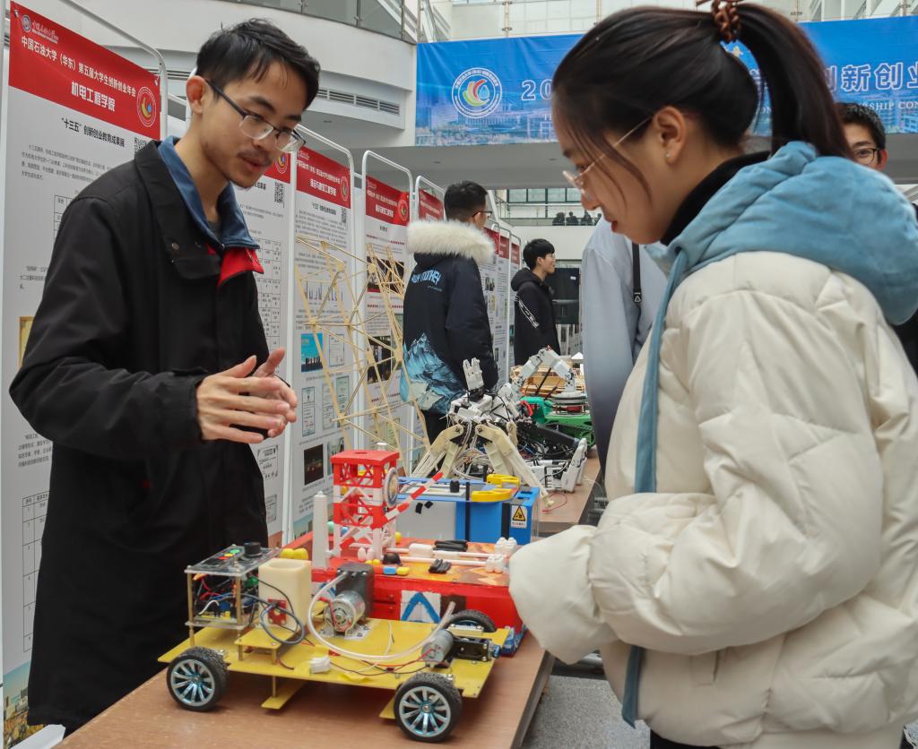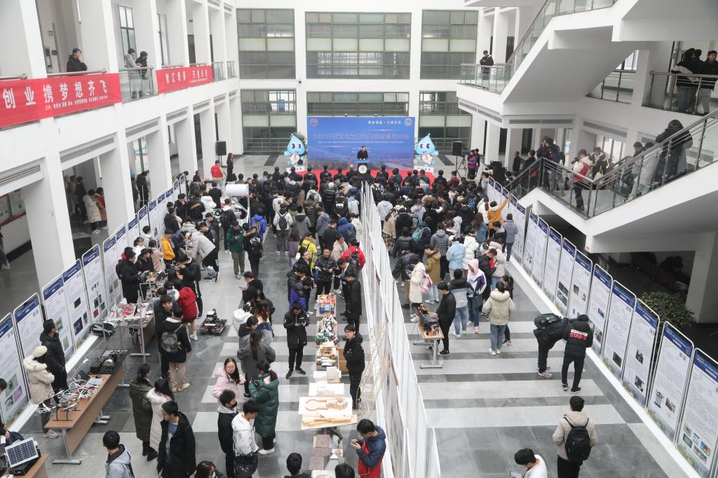 开幕式后,万云波等参观大学生创新创业成果展,对学生们的创新创意和项目研究成果给予肯定,鼓励学生持续钻研,取得更加优异的成绩。