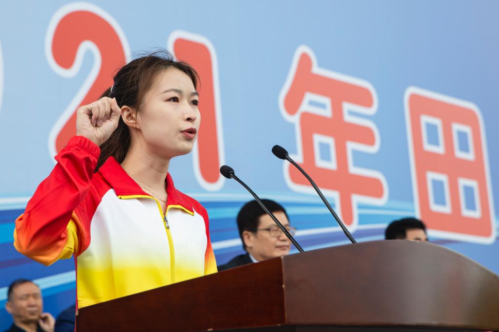 党委书记王勇宣布开云电竞投注(华东)2021年田径运动会开幕。