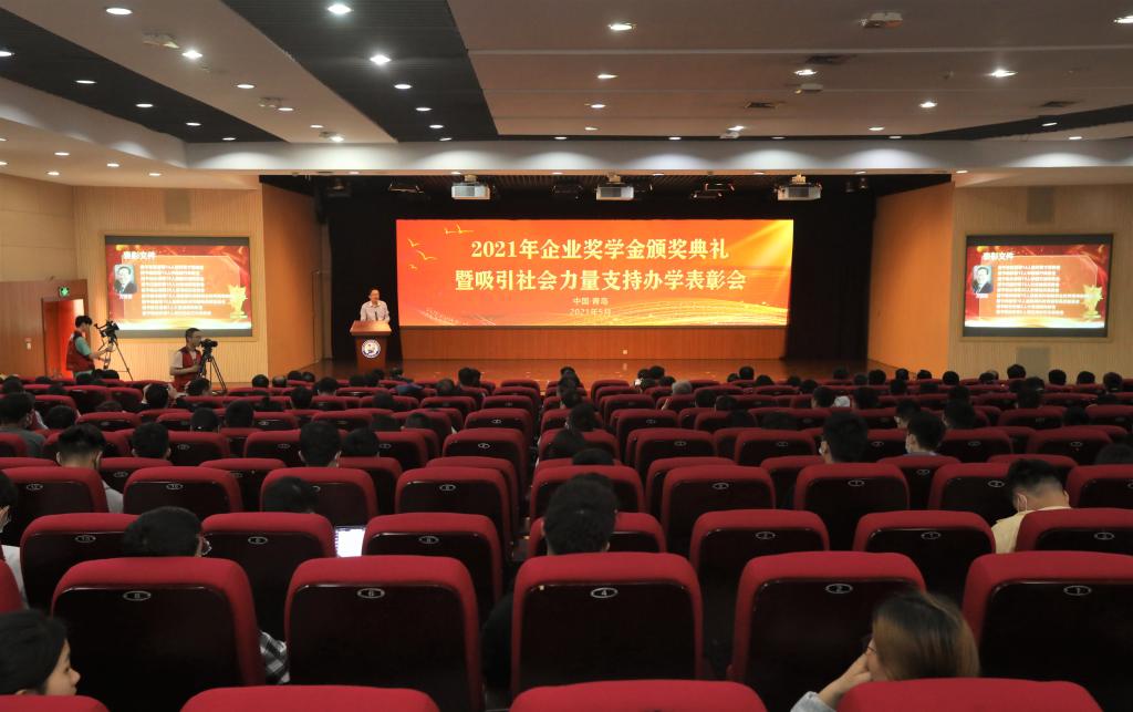 万云波宣读奖助学金、奖教金表彰文件。授予张繁昌等86名教师“胜利育才奖教金”“中国银行奖教金”“新疆石油奖教金”等9项企业奖教金,授予李杰等876名同学“王涛英才奖学金”“中国石油奖学金”等35项企事业奖学金,授予刘晨露等275人“中国银行助学金”“柏年助学金”等11项企事业助学金。万云波为2020年吸引社会力量支持办学特殊贡献奖获得者、先进单位、先进个人颁奖,青岛中石大控股有限公司、化学工程学院、杨朝合、耿彦军获“特殊贡献奖”,学生就业指导中心、财务处、团委获“先进单位”称号,刘咏梅等19名教职工获“先进个人”称号。