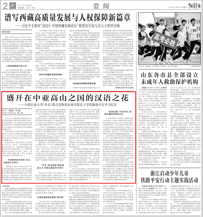 5月25日,中国青年报以《盛开在中亚高山之国的汉语之花》为题报道开云电竞投注(华东)塔吉克斯坦冶金学院孔子学院推进中文学习的积极做法和成效。