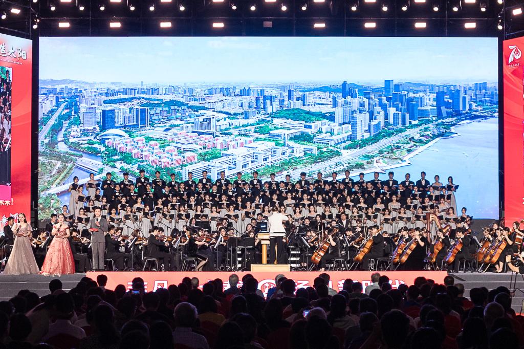【本站讯】9月28日,学校建校70周年交响音乐会《创造太阳》在体育馆隆重举行。校领导、来宾、校友及师生近4000人观看演出。