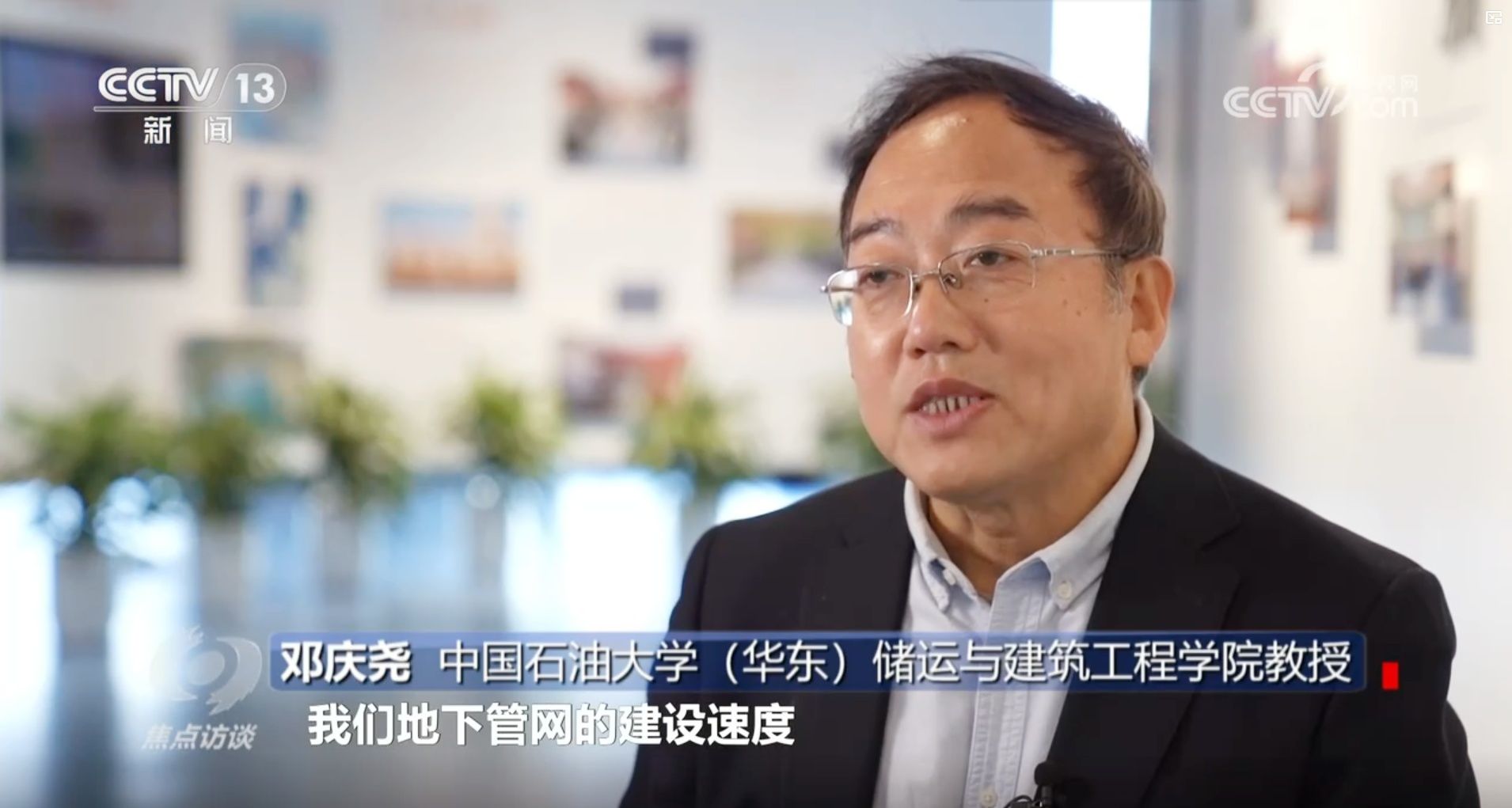 【本站讯】为保障现代城市各类要素有序流动,燃气、供排水、供热、电力、通信等城市地下管线发挥着基础作用。今年以来,各地城市管网改造和建设纷纷按下“加速键”,许多城市都将地下管网改造和建设作为一项重要的民生工程来抓。12月5日,央视《焦点访谈》栏目以“城市更新 让‘里子‘更有‘面子‘”为题,聚焦青岛等多个城市地下管网改造和建设进展情况,我校储运与建筑工程学院邓庆尧教授接受采访。