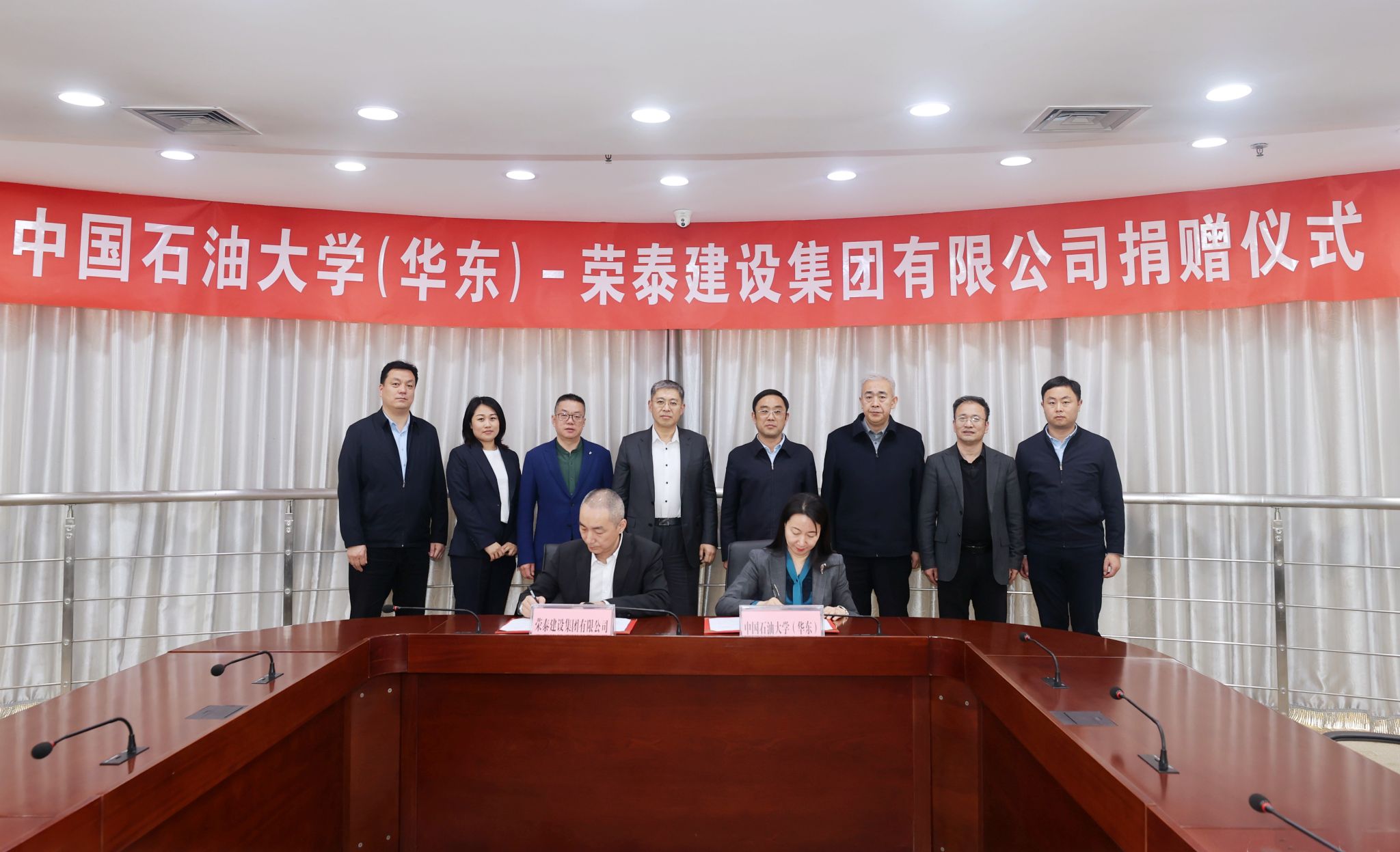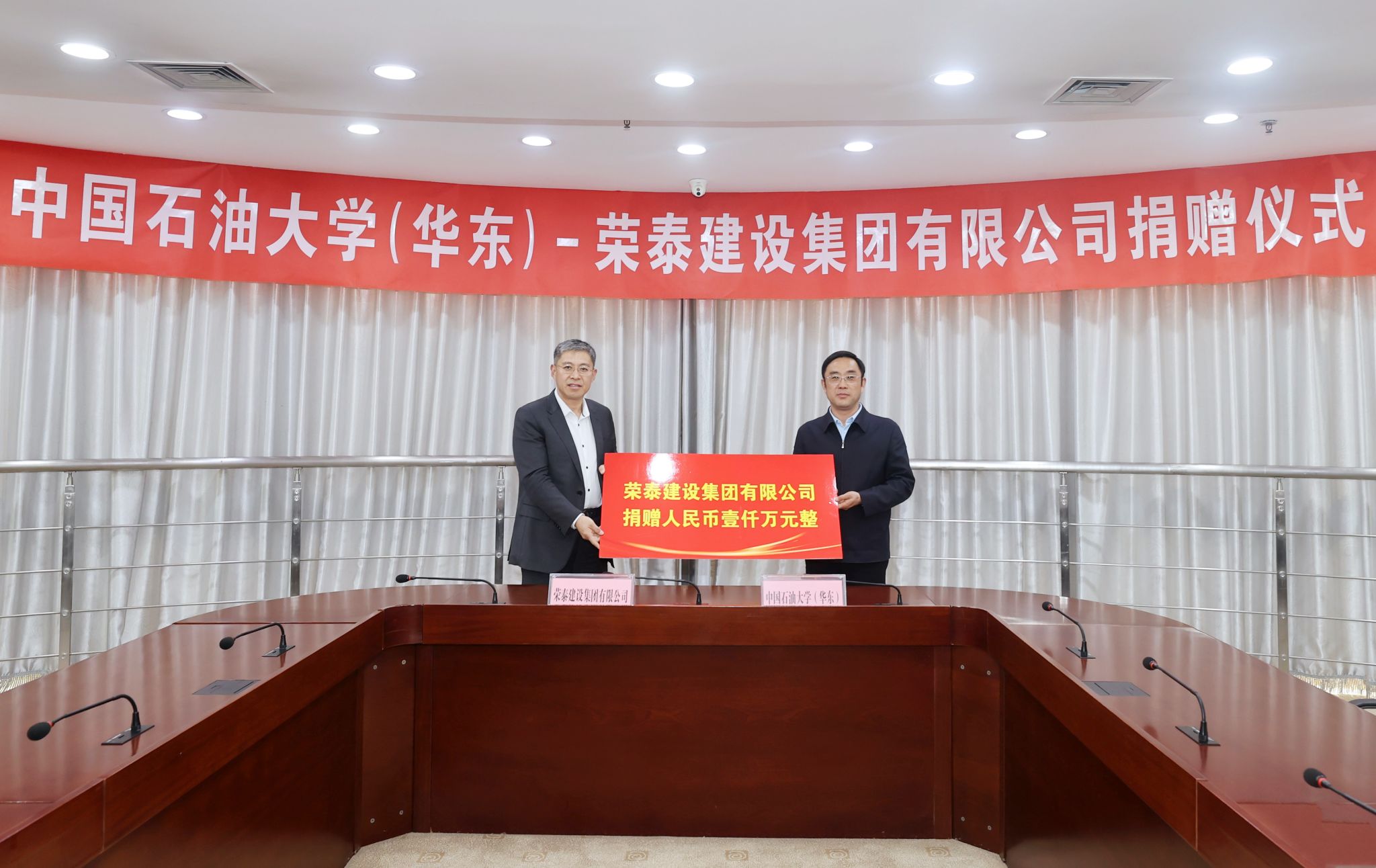 荣泰集团向学校捐赠1000万元。吴强明代表学校接受捐赠,并向薛鹏颁发捐赠证书。王洪与王效美代表双方签署捐赠协议。