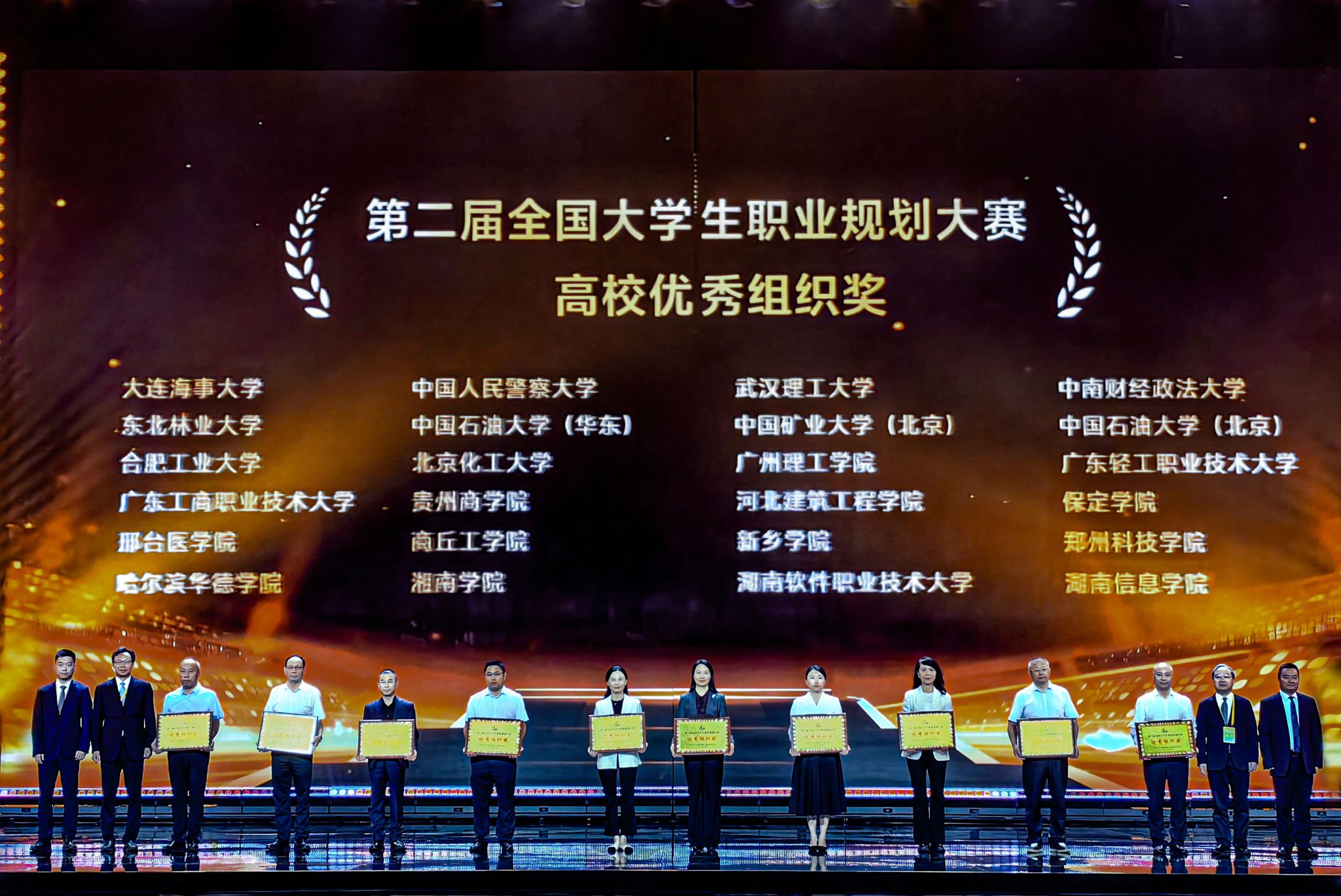 【本站讯】4月16日—19日,第二届全国大学生职业规划大赛全国总决赛、风采展示及颁奖活动在湖南长沙举行。我校地球科学与技术学院资源勘查工程专业2022级本科生海晴获高教组成长赛道金奖,王力禾、栗磊、郑珊珊获评优秀指导老师。学校获评高校优秀组织奖,校长助理王效美作为获奖高校代表参加颁奖仪式。