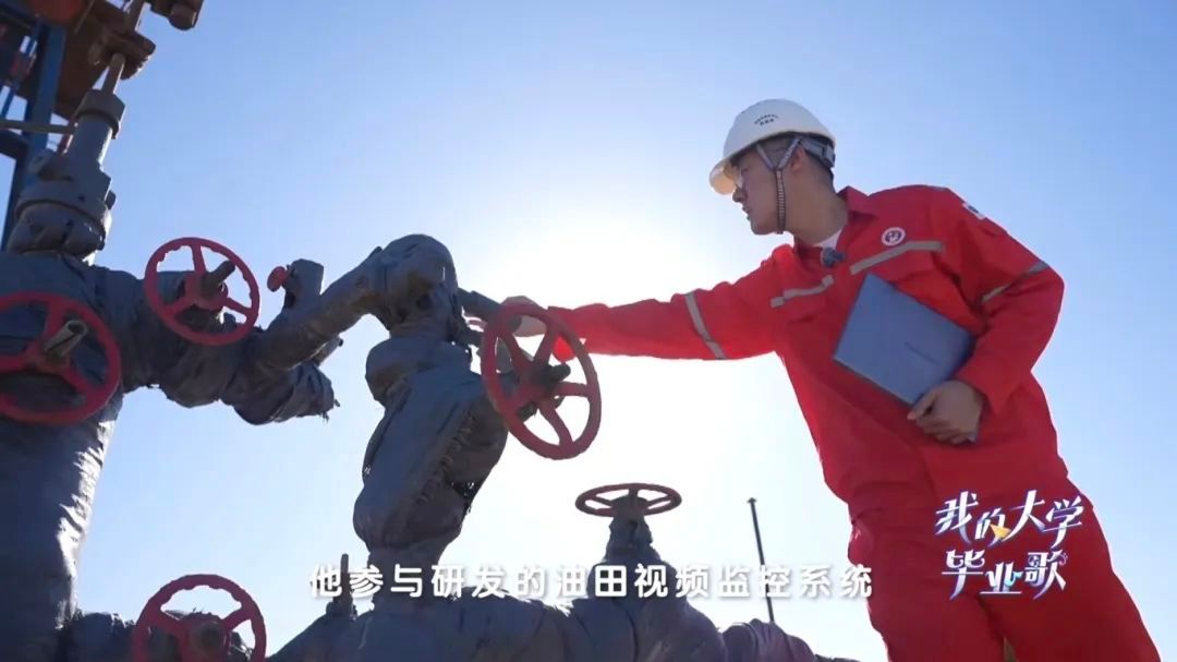 在“朋辈领航”篇章,2025届博士毕业生杜承泽通过研发视频监控系统,将计算机技术与人工智能应用到油田现场,让上千路摄像头练就“火眼金睛”,准确识别原油泄漏情况,有效解决了油田环境监测的实际问题,助力油田现代化智能化转型。