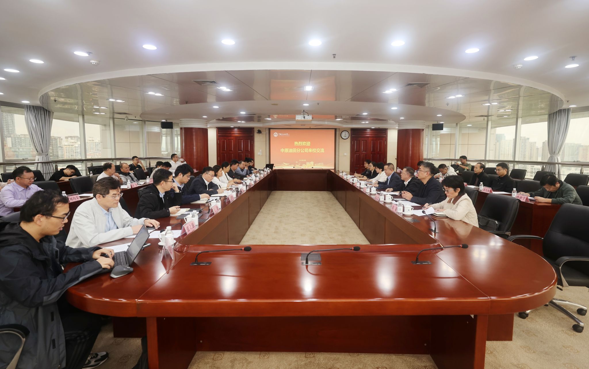段金宝就学校一直以来对油田科技事业发展的支持表示感谢,希望通过此次交流,进一步推进战略合作协议落地实施,与学校开展全方位、深层次、多领域持续合作,共同把中原油田打造成科技成果试验基地、新技术应用基地。