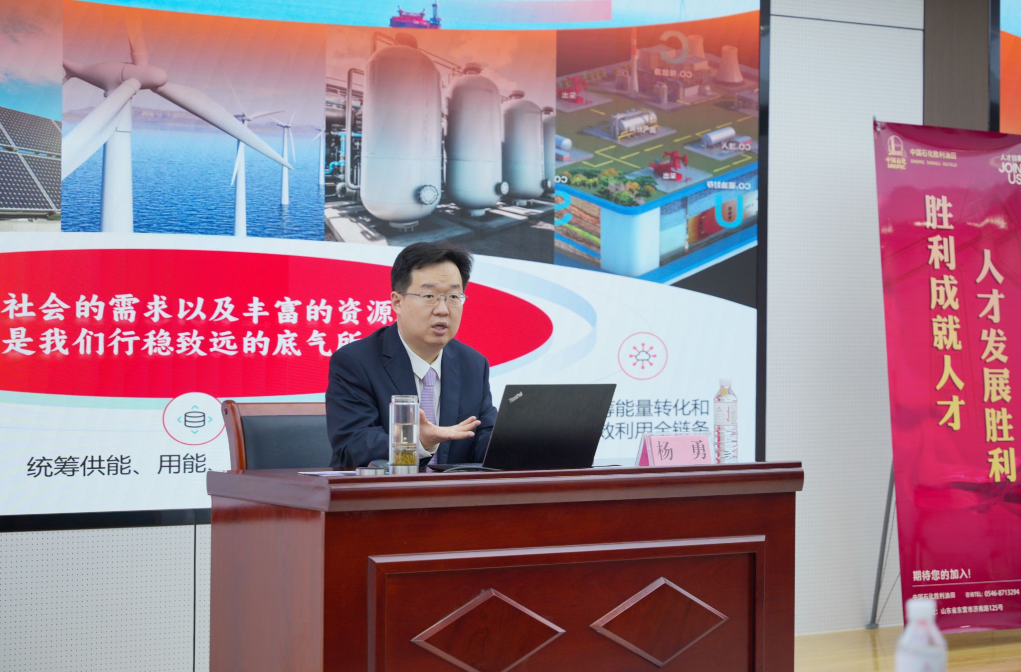 在胜利油田2026年高校毕业生招聘宣讲会上,杨勇从企业基本发展情况、未来职业发展、薪资福利等三个方面开展招聘宣讲,欢迎更多石大学子加入公司,投身石油石化事业。同时,他结合自身从石大毕业后的成长经历,鼓励毕业生将个人理想融入国家发展大局,选择适合自身的平台不懈奋斗。